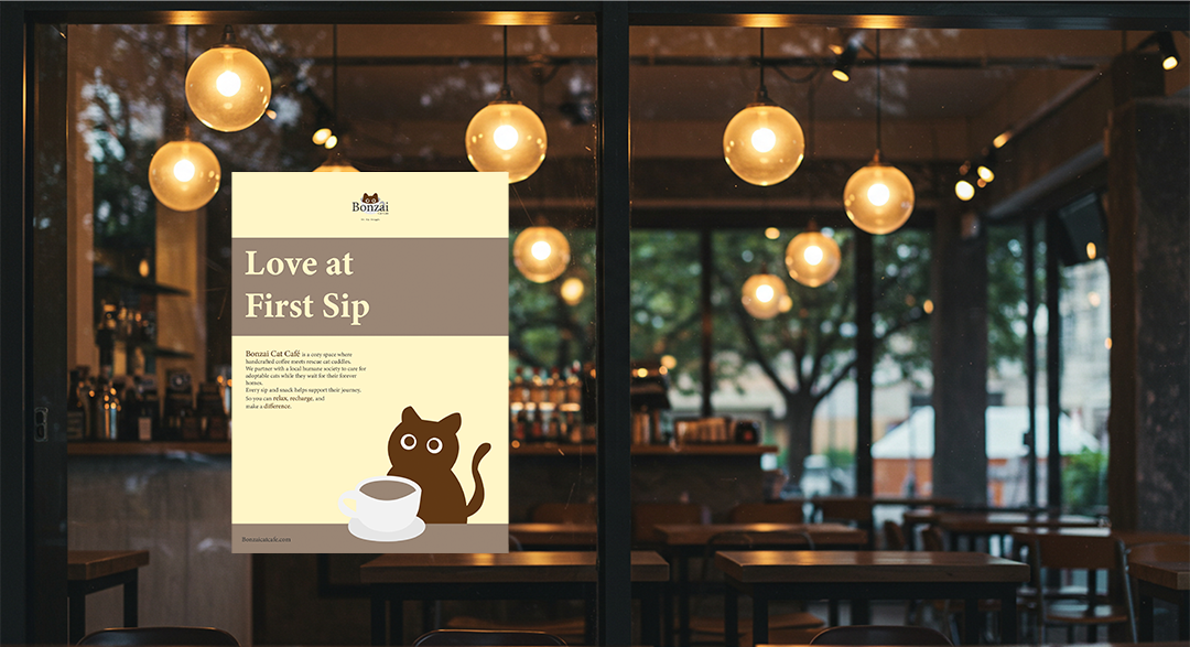 Developed a friendly and approachable visual identity using warm yellows and browns paired with calming greys, with illustrated elements that reflect the playful, comforting, and adoptable nature of the cats. The designs balance charm and clarity, making the brand feel both inviting and memorable.